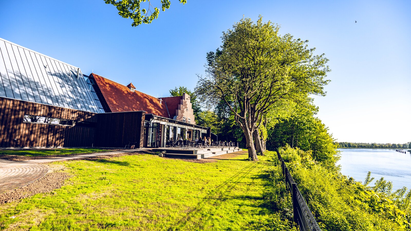 For about 20 years, one of Kiel's most beautiful destinations stood empty and visibly deteriorated. In summer 2021, the Margaretental restaurant finally reopened in a prime location on the Kiel Canal. Today, the building cleverly combines tradition and modernity: The façade of the restaurant, which was first mentioned in 1896, was preserved, and behind it a contemporary interior design was created. The new extension, which also houses the sanitary areas, uses HEWI solutions in a sophisticated matt black that harmonise with the industrial look of the new Margaretental.