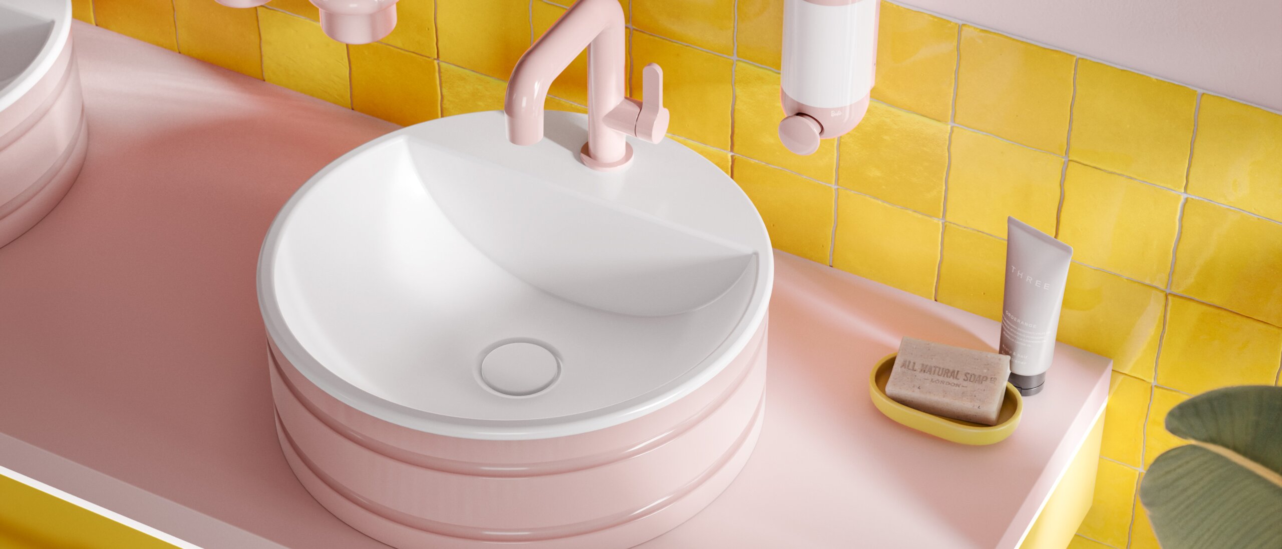 At the same time, the design plays a central role. The iconic pink colour scheme is used specifically to make functions visible and provide orientation. It shapes the perception of the wash area in the room and is clearly recognisable as a homage to Barbie™, without being merely decorative. Instead, the colour scheme is deliberately integrated into the products and effective in use.