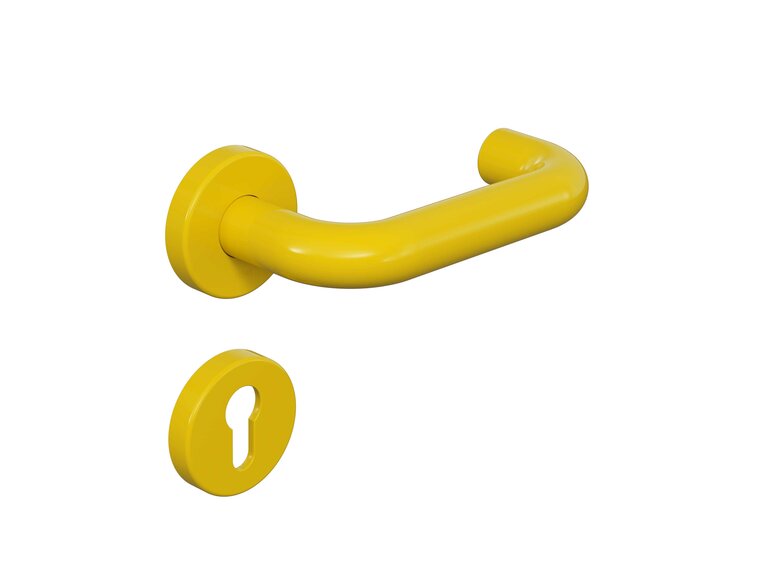 The design original features a clear style. The bright yellow door handle virtually invites you to enter. As an essential and functional building block in architecture, the HEWI classic is much more than simply a door opener. Leja sees it as part of the overall creative context of a space and as a first encounter that welcomes visitors with openness and playfulness. Because a creative attitude is also expressed in detail.