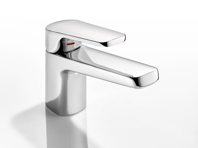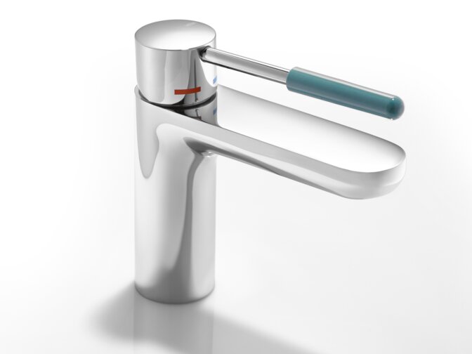 The single-lever washbasin mixers are equipped with an open operating lever. This allows them to be operated with just one finger making them easier to use for people with motor impairment.